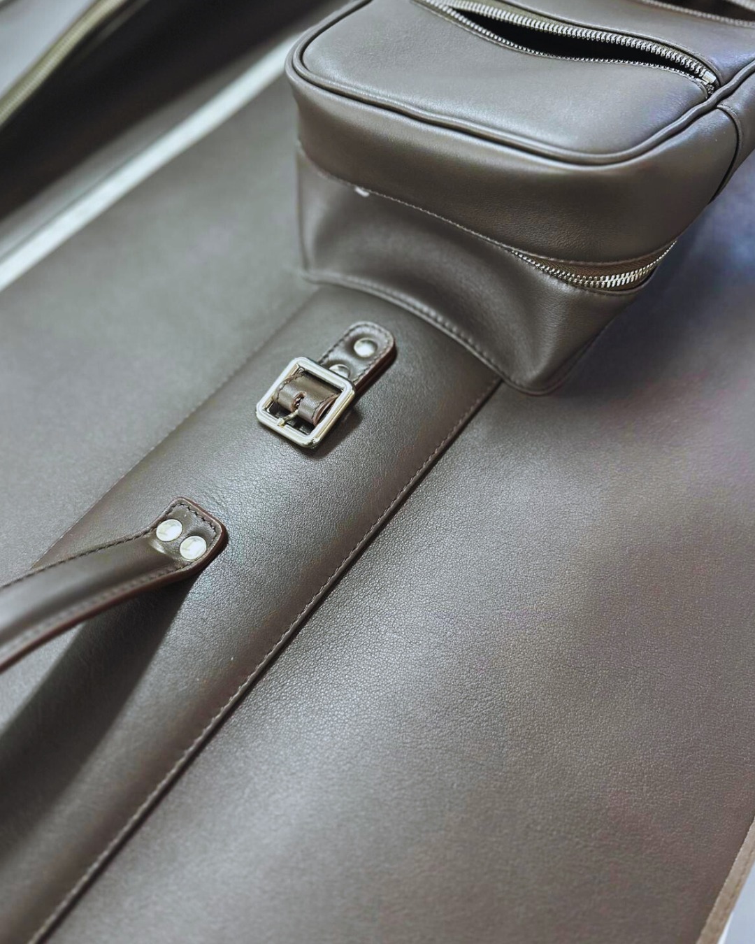 Trabajamos exclusivamente con cuero auténtico de alta calidad, seleccionado por su resistencia, textura y capacidad de envejecimiento natural. El cuero debe ser bello desde el primer día y mejorar con el paso del tiempo. No hay bolsa extraordinaria que empiece con material mediocre.
